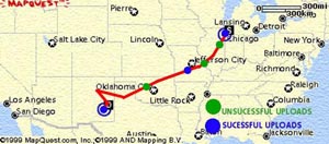 @10:30am: Hey everybody! If you're reading this then our latest upload was a success and the trip continues. I figured we could use this time to thank everyone that has e-mailed us with suggestions or just good wishes. It's established that updates will not be as continuous as we had hoped, especially on the road. But we figure that you'll just have more content to wade through when we do get it sent. It's a lot harder to convince people to give up their phone line than we originally thought. We hope that once we settle in Roswell we will have a little easier of a time. In the meantime, keep the e-mail rolling though and we will try and get back to everyone in time. At the time I am writing this we are about 5 hours away and making good time.