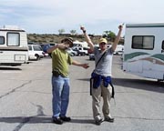 Being used to Michigan camping, it was kind of wierd seeing no trees. Mike wasted no time