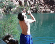 revitalized we headed down to the lake which was only 50 yards from camp, to take a dip and